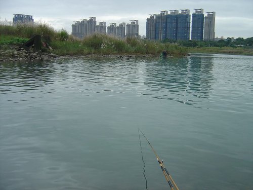 原想這星期可去基隆河或深坑的老窩找找尺鯽的,但每次到放假前都開始下起雨,所以計劃全泡湯,觀察新店這陣子的水位,開始稍退於是先來去碰碰運氣,先到第一個地方但無停車位,遠遠望過去水位好像有點高也,於是只好去另一頭啦,等下頭水邊時水漢到只有兩個釣位了,其中一個在地的卡位了,於是內灣處便是偶的囉,先用12尺的試,call 了一陣子後今日開門鯽妹妹便來報到了,接下來水位開始持續上漲,由水位開始上昇後水下便無汳應了,近午時已無退路了,在地的也受不了掛底及無信號,收工回去了,在閒聊時說前幾天時釣了3-40 匹45 指的鯽妹妹,但全都捉回去下肚了,今日還說家人來電說米酒買好了,等他帶鯽妹回去,聽到這些心中不免OOXX,若是給我釣不是好咩,最少還能玩個好一陣子哩,最後硬撐到所以的陸地全到水中後不敵水流,只能放棄啦.